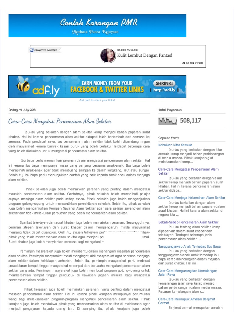 Contoh Karangan Pmr Cara Cara Mengatasi Pencemaran Alam Sekitar Pdf